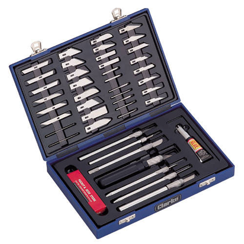 A comprehensive knife kit for the aspiring craft or model maker containing virtually everything needed to get started. Suits a whole range of material – wood, cork, leather, rubber, plastic etc.