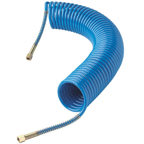 High strength, flexible nylon hose for compressed air supply in garages, factories, workshops etc. Extends up to 10m – recoils when slack.