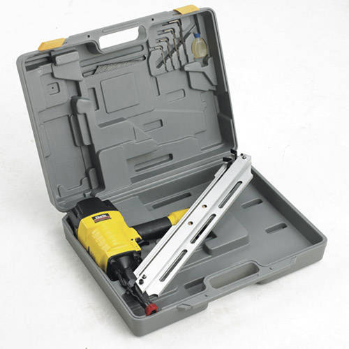 This heavy duty, powerful professional-use tool is ideal for construction trade building, assembly & fabrication tasks. Designed for use when undertaking projects such as roof & timber frame building, internal partition wall assembly etc. Also useful for toe-nailing boards together. Includes operator safety yoke and soft rubber grip handle for fatigue free comfort.