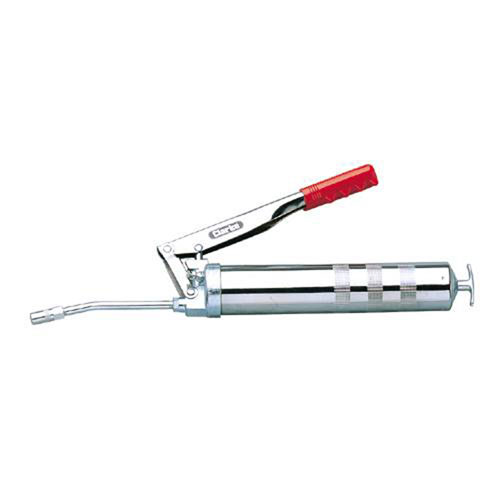 A professional manually operated side lever grease gun with performance equal to that of some larger air operated systems. Slim linear design enables this self contained unit to reach into many awkward and difficult to access areas.