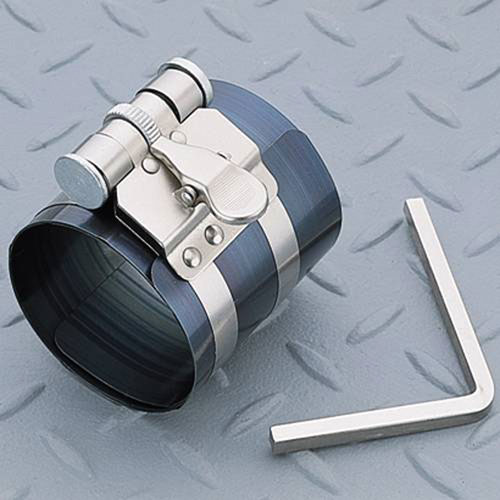 A strong spring steel envelope which compresses rings in position on the piston enabling the assembly to be inserted easily into the bore without the risk of damage.