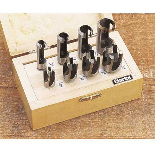 Ideal for producing perfectly sized plugs to fill counter bored holes. The CHT367 set includes standard and chamfered cutters for cutting a wide range of plug diameters.