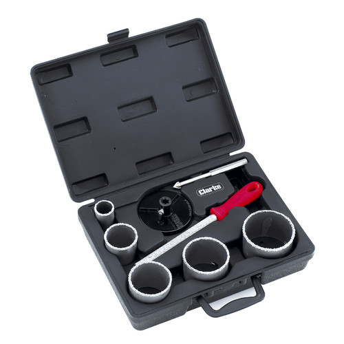 A versatile holesaw set, perfect for drilling holes at variable diameters in masonry, brick, plasterboard, plastic and tiles. Tungsten carbide grit saw teeth ensure each hole saw makes light work of all these materials – even bricks!
