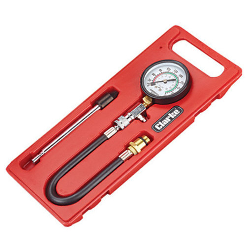 This 2 piece compression tester kit is ideal for use with most petrol engines. Featuring a dual calibrated gauge reading, 150mm straight push-on connector, 320mm flexible hose and 2 adaptor sizes. Supplied in a handy carry case for easy storage.