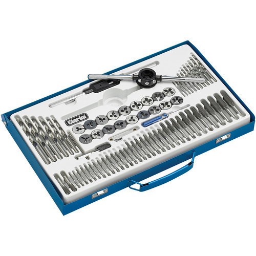 76 piece metric/BSP tap and die set in a convenient metal case, for general workshop use. Made from high carbon alloy steel.