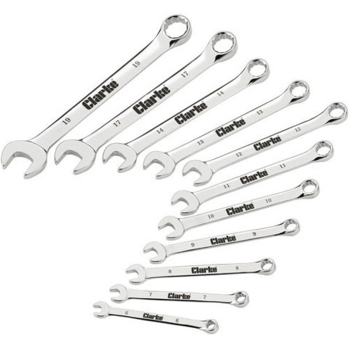 Clarke CHT806 11 Piece Combination Spanner Set -Metric Description 11 Piece combination spanner set – metric £19.81 In stock Clarke CHT806 11 Piece Combination Spanner Set -Metric quantity Add to basket EAN: 5016086241010 SKU: 1801806 Category: Spanners & Wrenches Description Specification High quality drop forged chrome vanadium steel Open end and 12 point ring combination spanners Fully polished mirror finish Heat treated and precision machined Sizes: 6,7,8,9,10,11,12,13,14,17,19mm Supplied in a convenient holder with carry handle Related products Clarke CHT106 11-Pce AF Spanner Set £26.13 Clarke CHT636 12pc Combination Spanner Set – Metric £19.81 Clarke PRO315 T-Handle Socket Wrench 8mm £13.45 Clarke PRO219 Flexible Wrench & Bit Adaptor £16.98