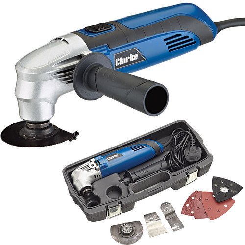 Ideal for DIY use, the CMFT250 Multi Function Tool is great for sawing, cutting, sanding, polishing, chiseling and various other applications. Featuring variable speeds, 3.8mm stroke length, oscillating action and complete with a sanding pad, 3 sanding sheets, 2 cutting blades, scraper blade & a side handle for extra control. Weight: 2.6kg