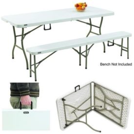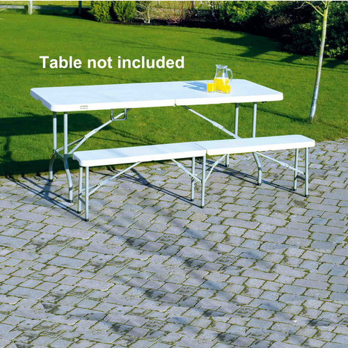 A high density polyethylene and metal framed seating bench, with folding legs. This 6ft bench folds in half too, for easy transportation and storage. Perfect for use in community halls, for sports & leisure events and activities, camping, Ideal for canteens, outside catering events and home & office use to.