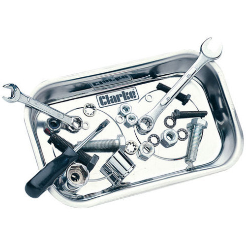 A stainless steel magnetic tray for holding all those nuts, bolts & screws as well as tools. Holds itself firmly to any ferrous metals surface and helps ensure parts are replaced after service or repair.