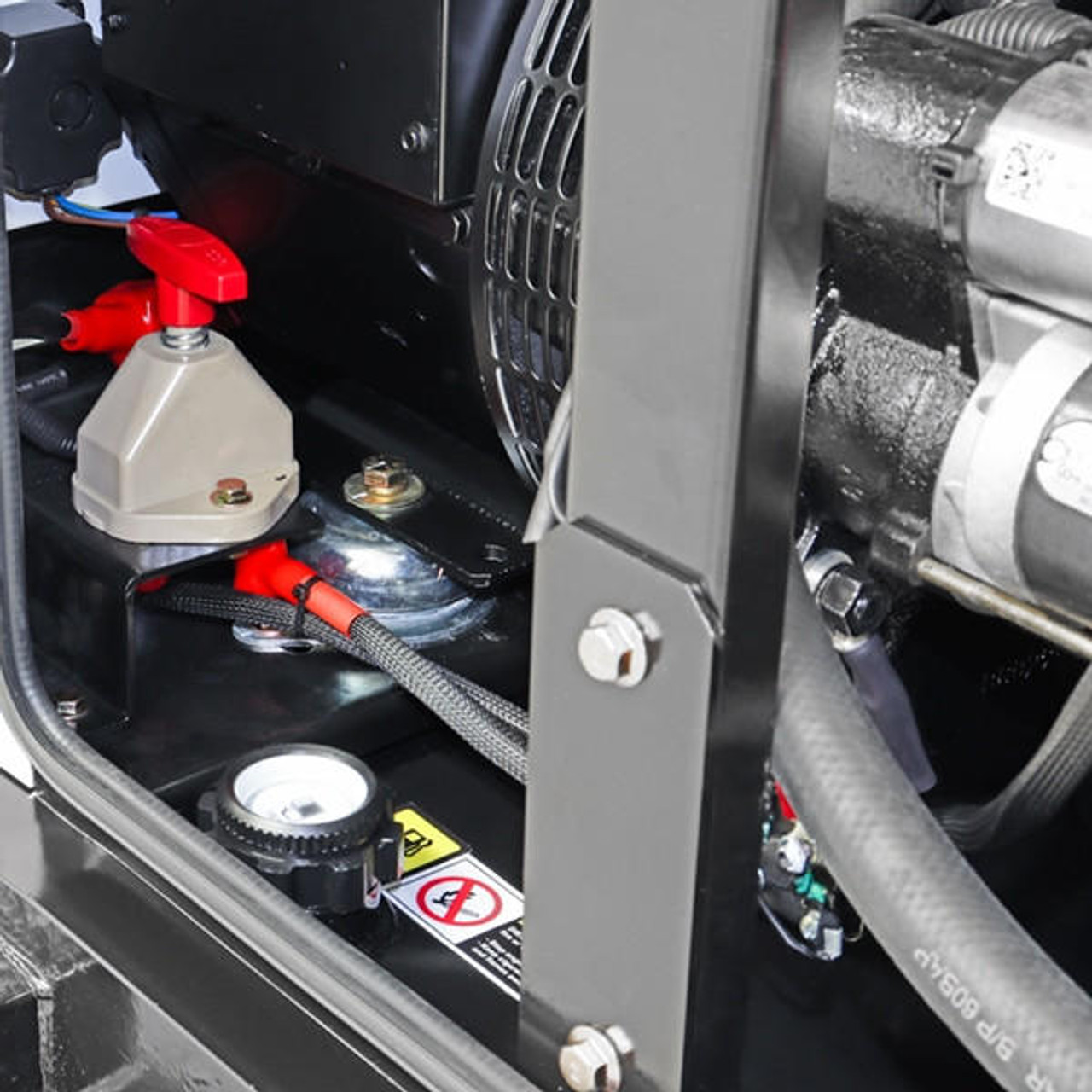 • Silenced generator: Housed in a weather-proof canopy, producing only 65dB at 7m