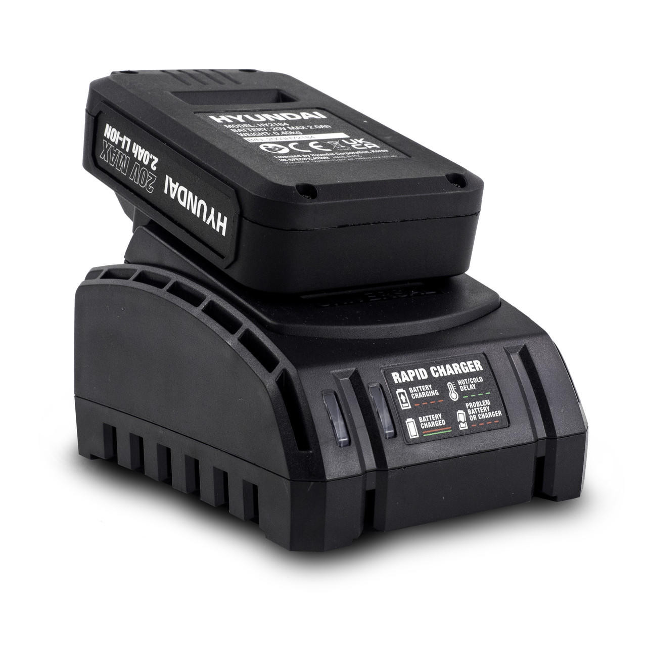 - Interchangeable battery: Power the whole Hyundai 20v garden machinery and power tool range from the same battery