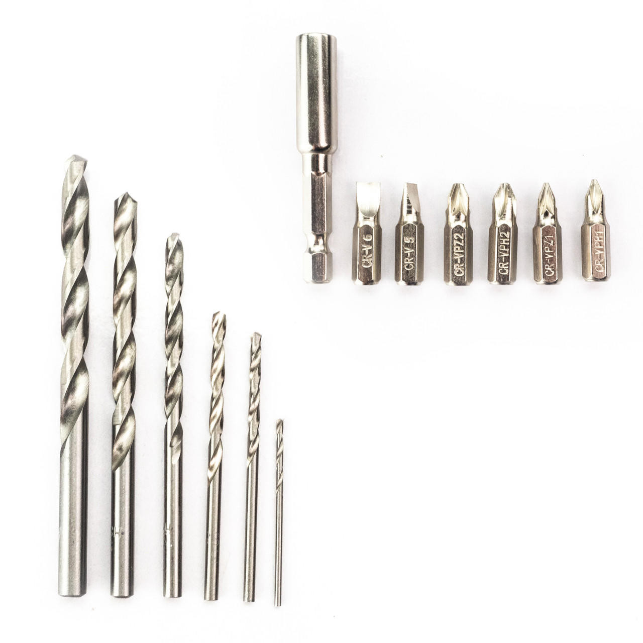 Includes battery and charger and 13-piece drill bit accessory kit