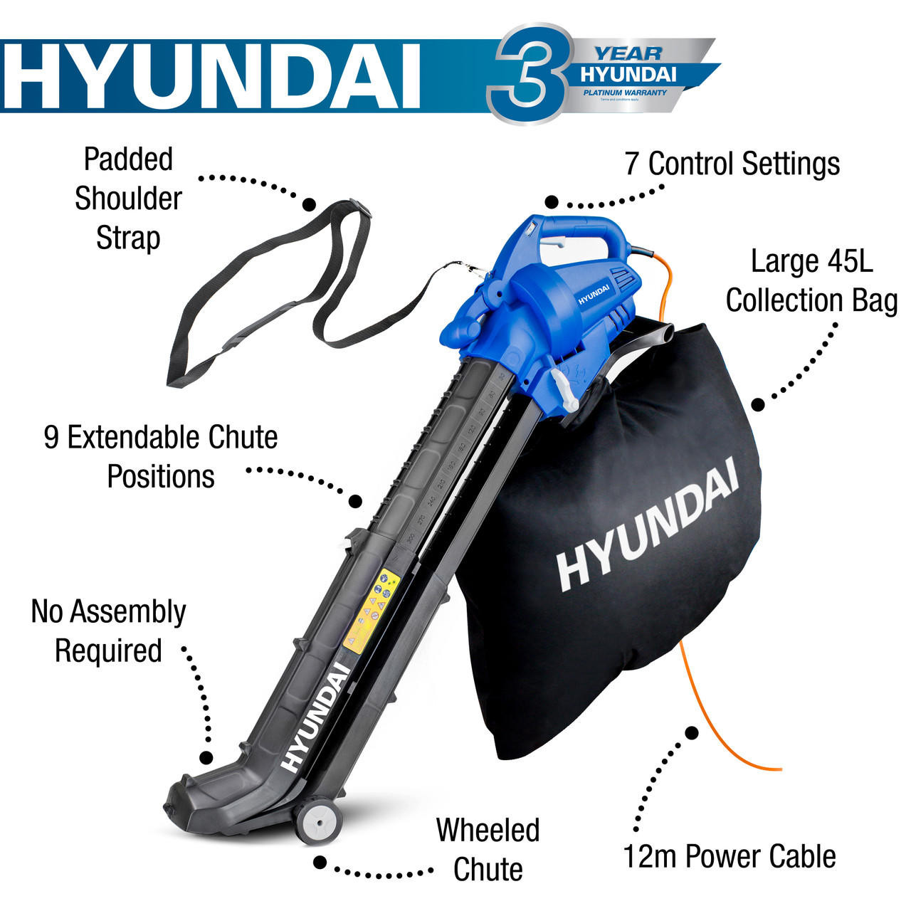 Hyundai HYBV3000E leaf blower/vacuum 12m cable 45L bag