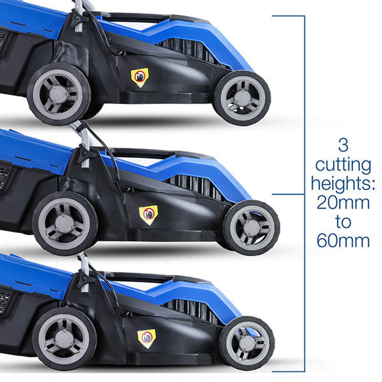 3 adjustable cutting heights: Get the perfect finish on your lawn