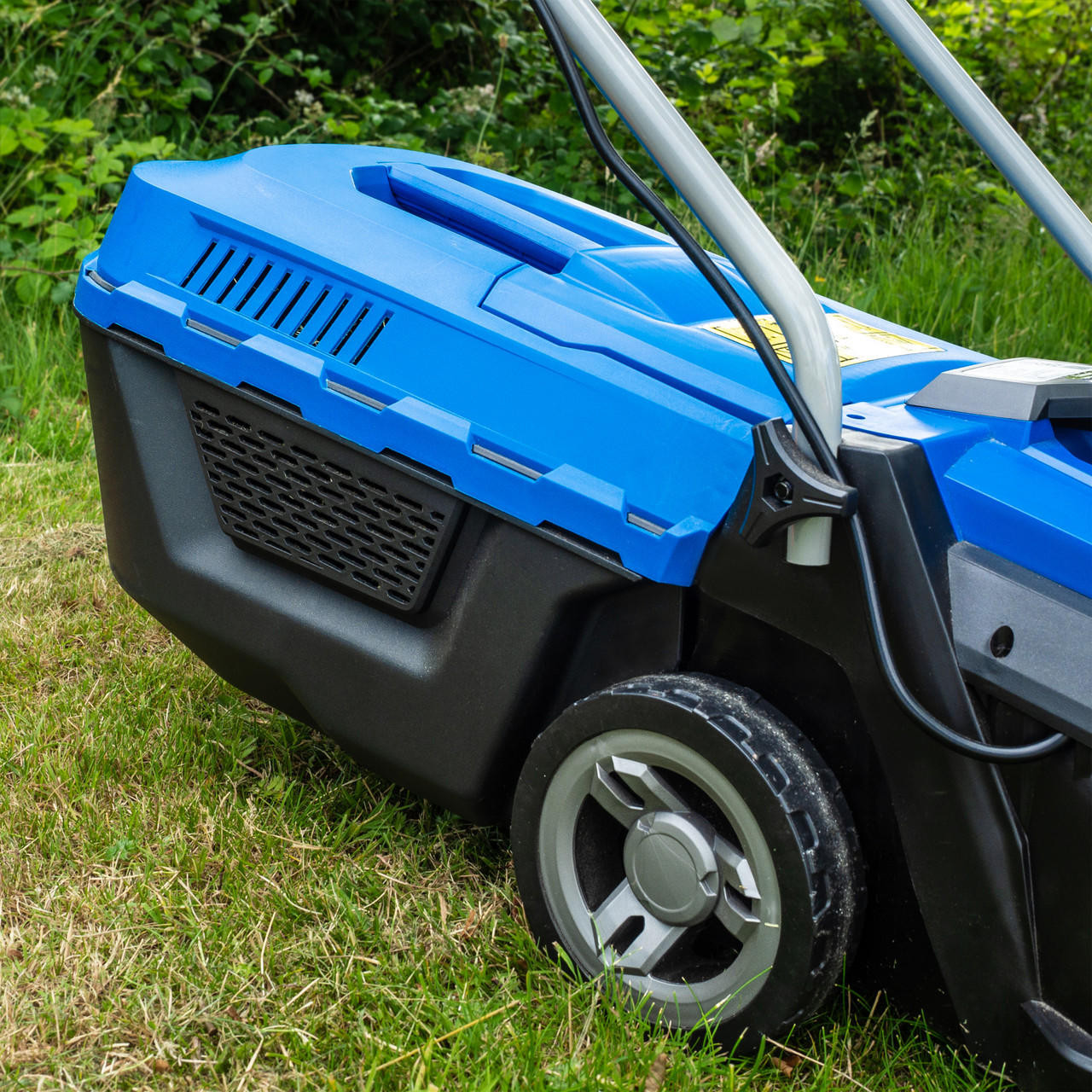 The HYM3300E features a quick-release 30L grass catcher with a hard lid, which will mean you’ll spend less time emptying the cuttings, reducing the time you’ll spend mowing.
