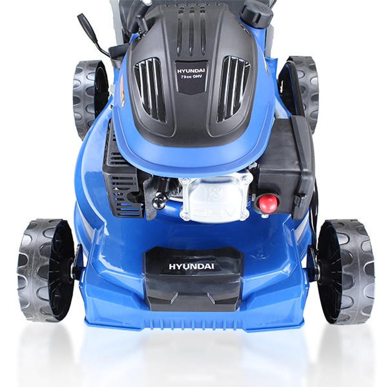The Hyundai HYM400P lawn mower is powered by an impressive Hyundai 79cc OHV economical petrol 4-stroke engine, delivering impressive cutting power but also low levels of noise and fuel consumption to minimise disruption and keep running costs to a minimum. It also features a soft-pull recoil start for easy starting each time.