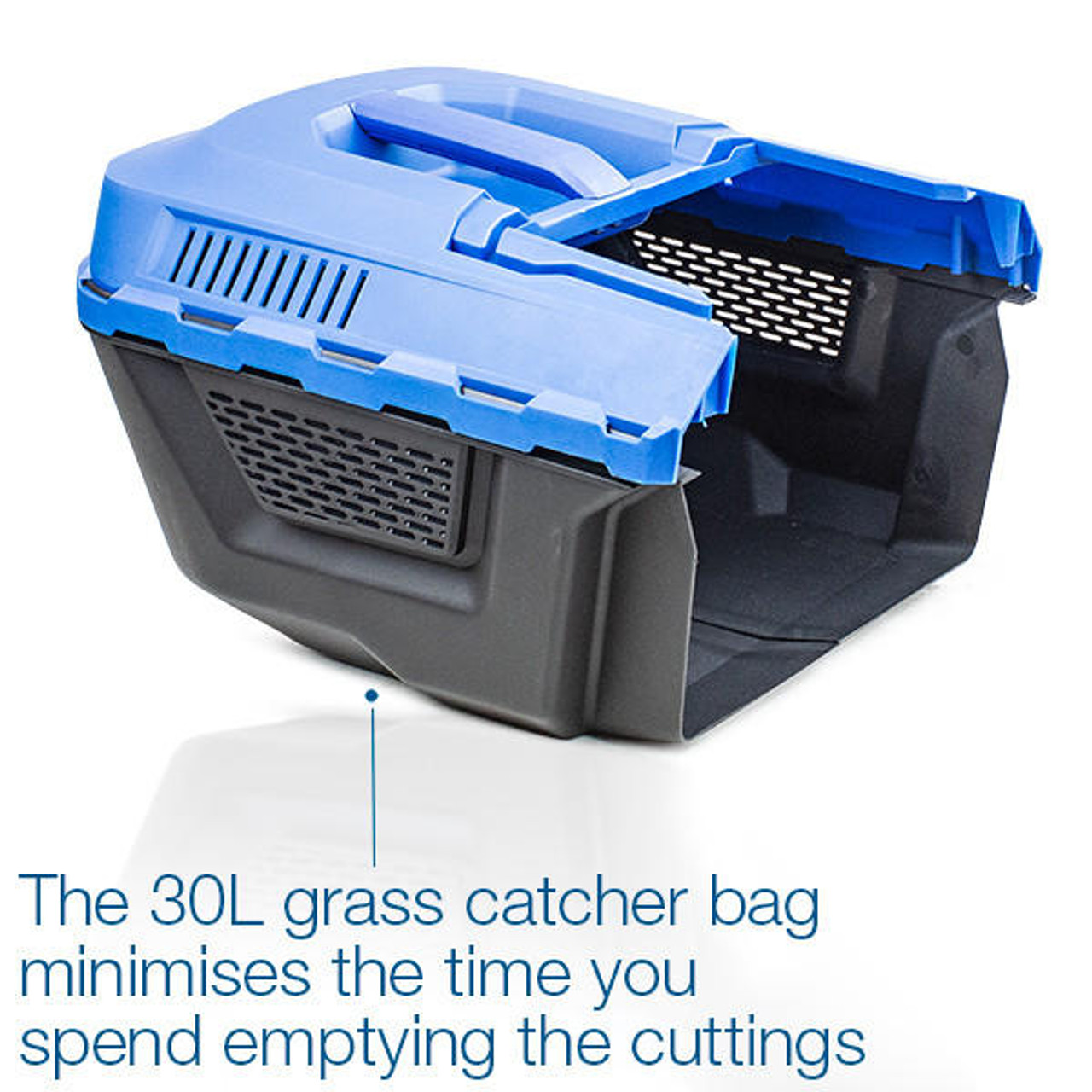 30L grass collector bag with mulching option: Minimises time spent emptying cuttings