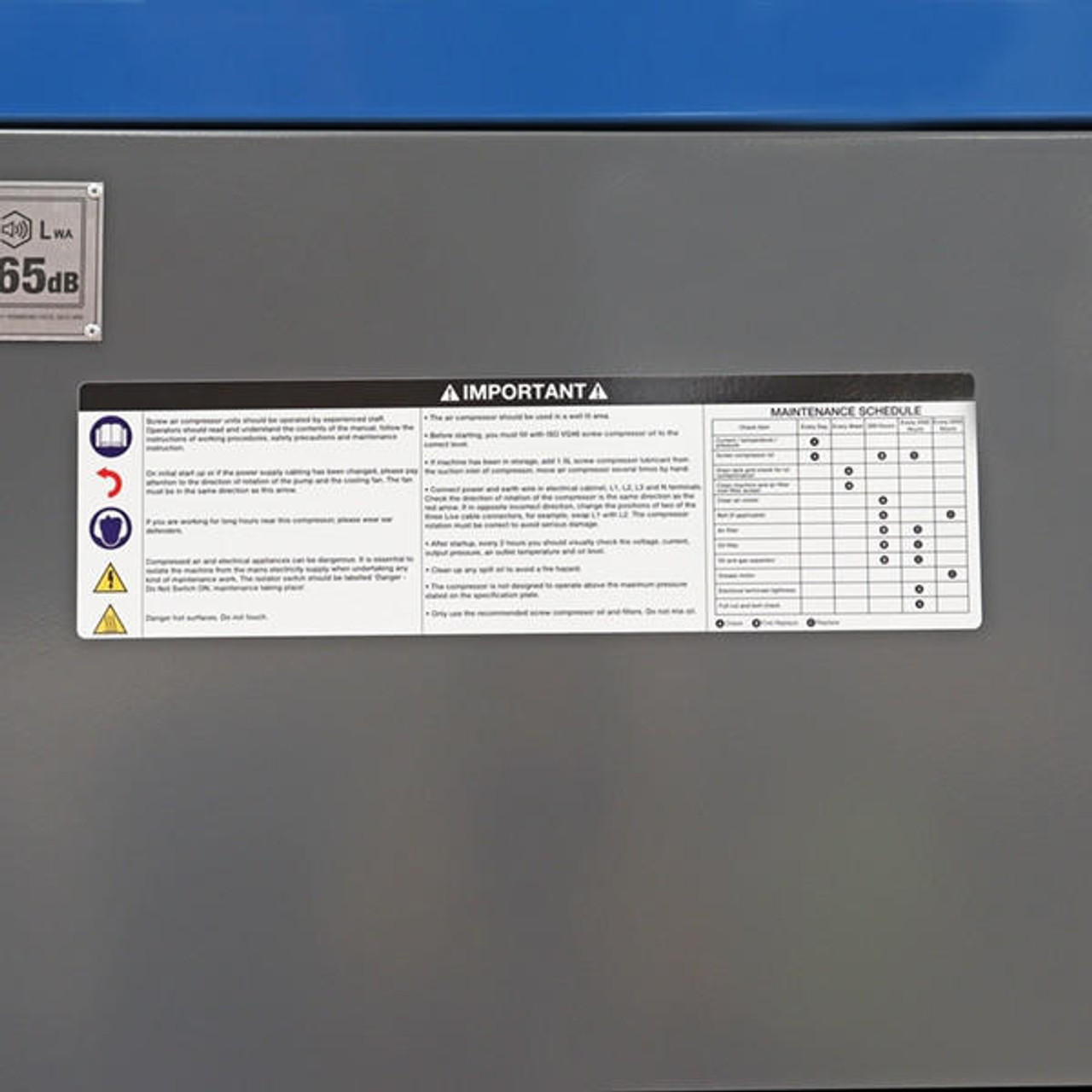 The high-efficiency motor and screw compressor unit is designed for continuous operation, with long service intervals and low maintenance and features an integral air dryer to remove moisture entering the tank.