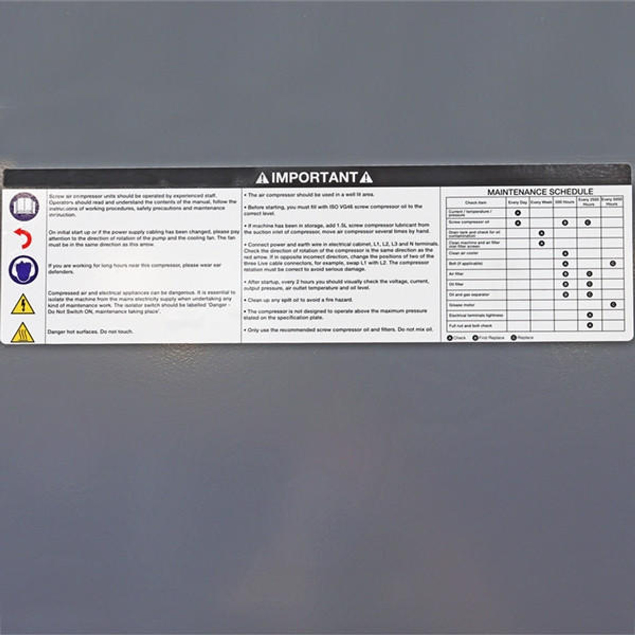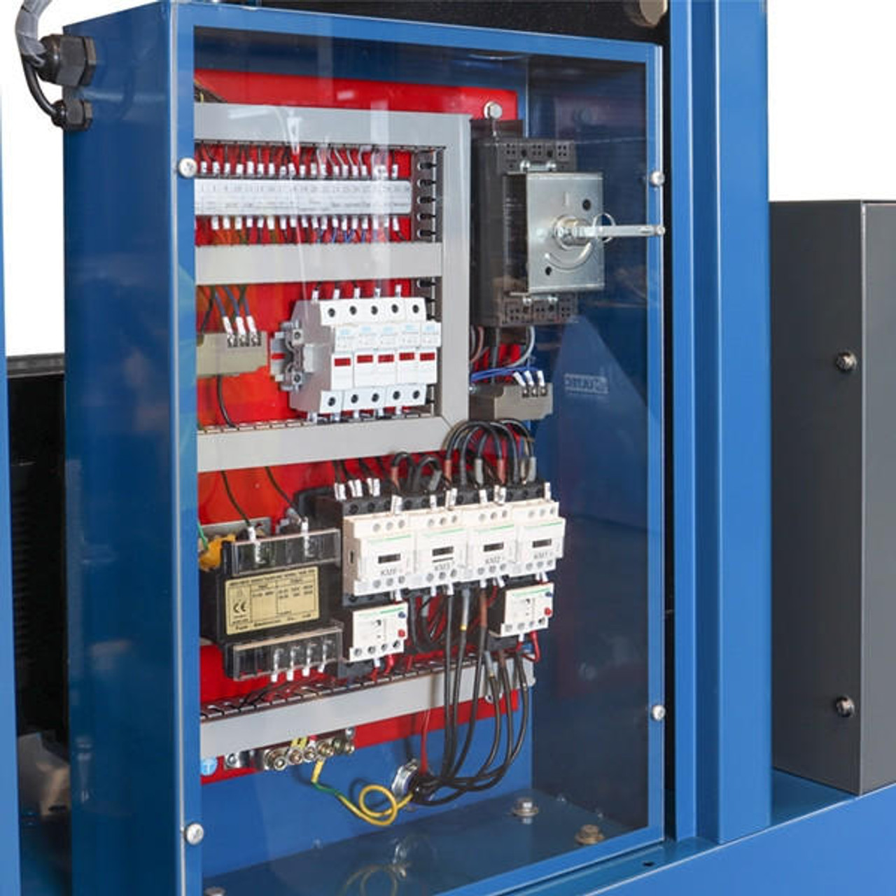 This powerful screw air compressor comes fitted with a 7” colour, touch-screen monitor, which monitors usage, but also comes with a range of integrated safety features including maintenance alerts and reminders, and will automatically shut itself down if left unattended for 24 hours.