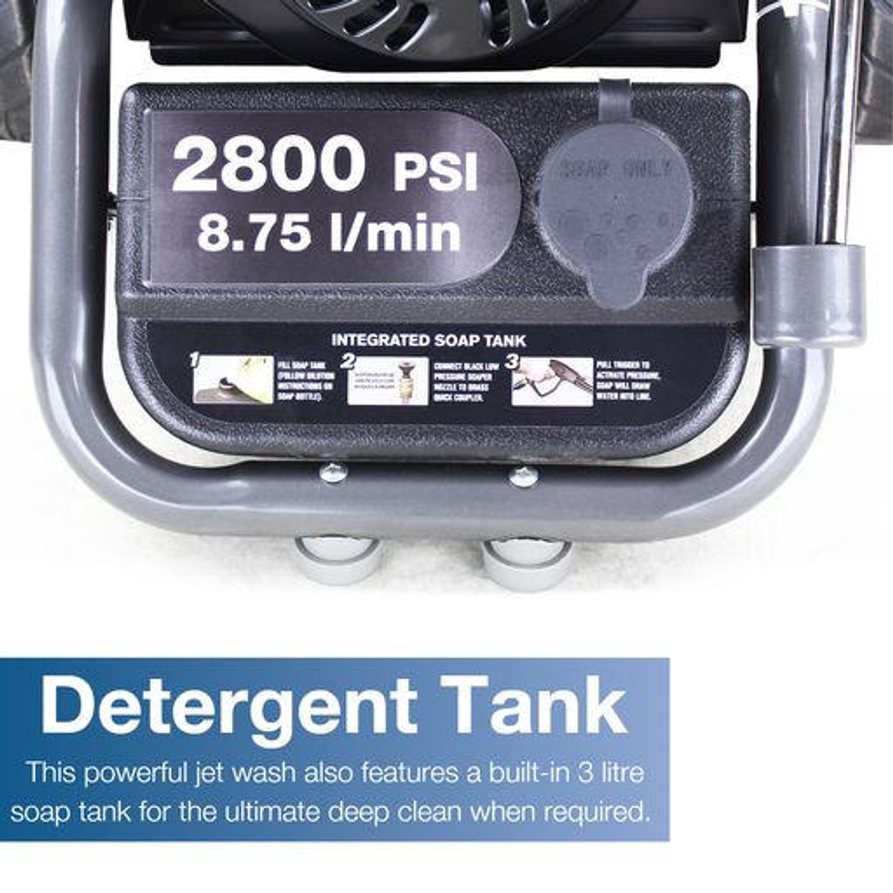 This powerful jet wash also features a built-in 3 litre soap tank for the ultimate deep clean when required.
