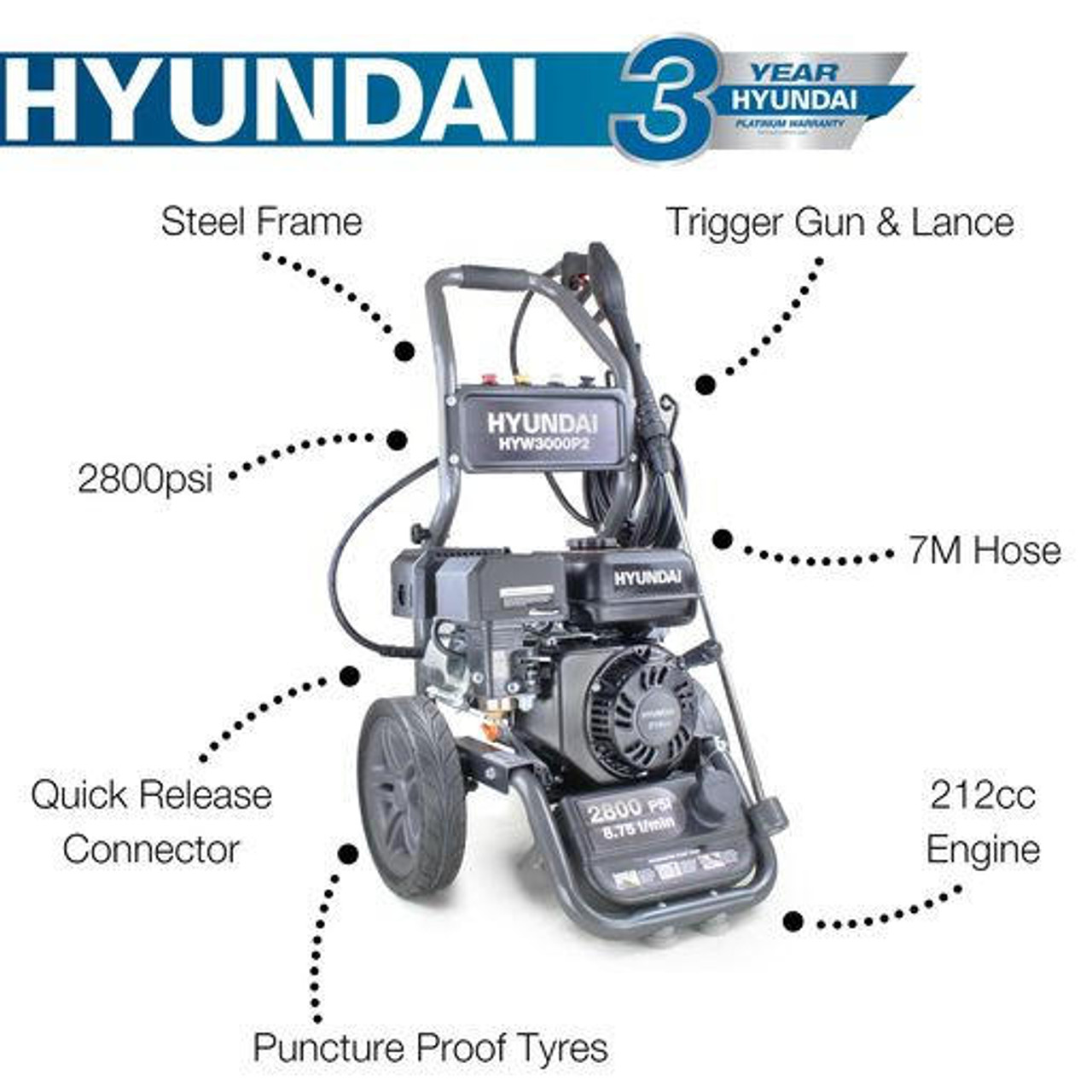 Hyundai HYW3000P2 2800psi 212cc 8.75L/min Petrol Pressure Washer