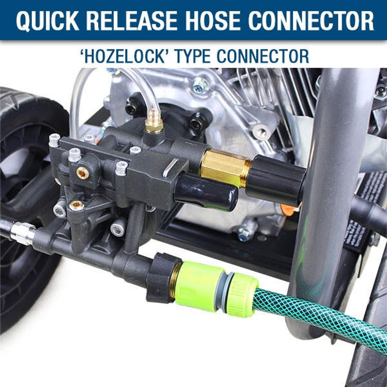 - Triple-piston stainless steel axial pump producing 2800psi: Low maintenance and requires no pump oil changes