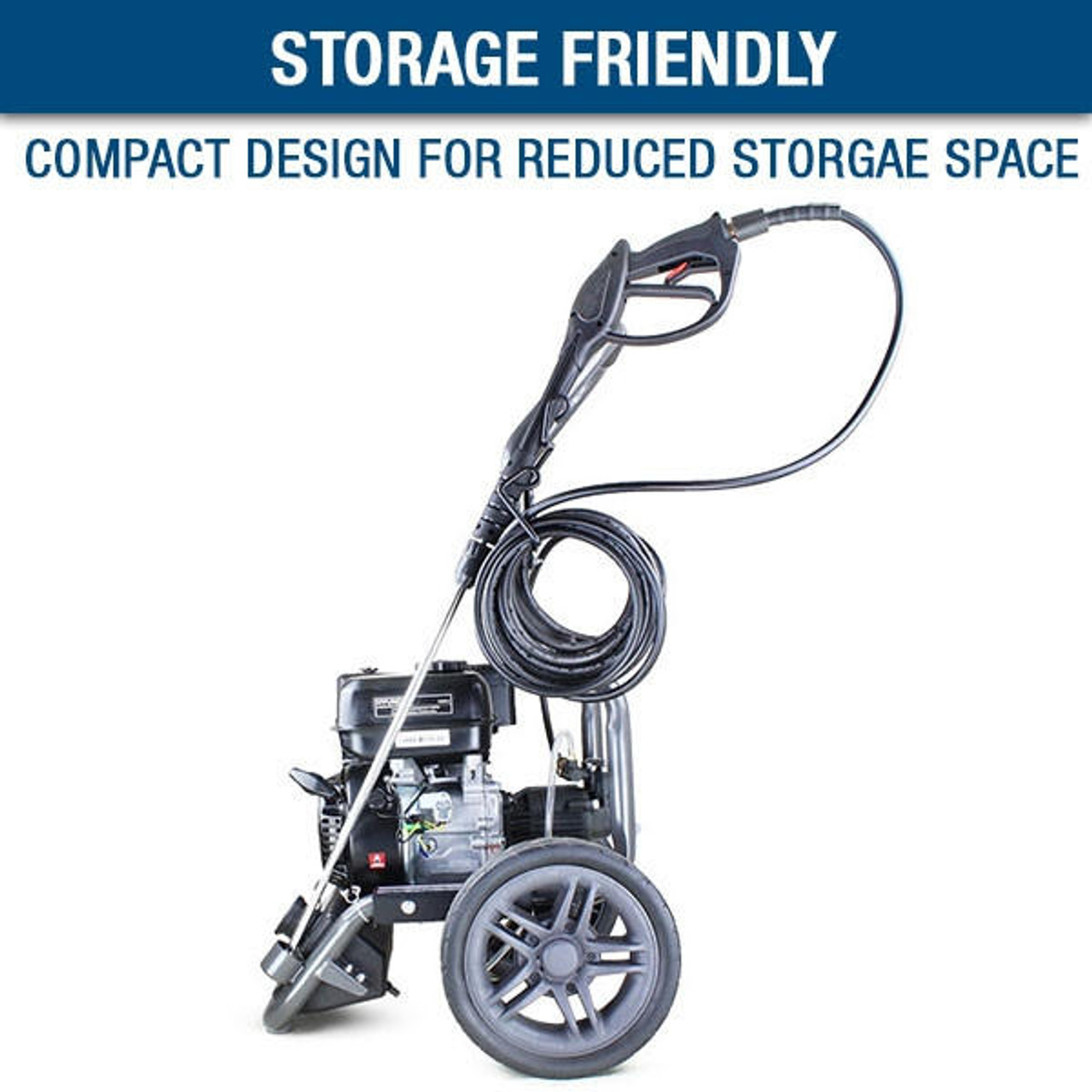 - Portable pressure washer: Fitted with puncture-proof wheels for easy mobility