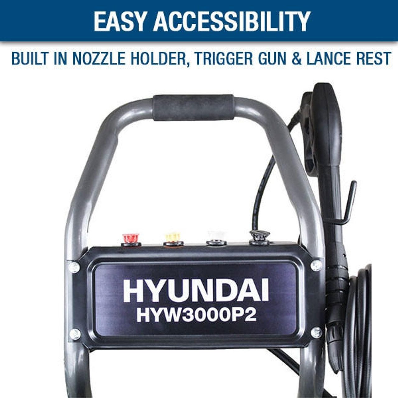 The HYW3000P2 delivers 2800psi pressure and a flow rate of 8.75L/min from its triple stainless steel piston, high-pressure pump for quick, easy and effective cleaning of driveways, patios, vehicles, windows and other demanding jobs where a high pressure washer is needed.