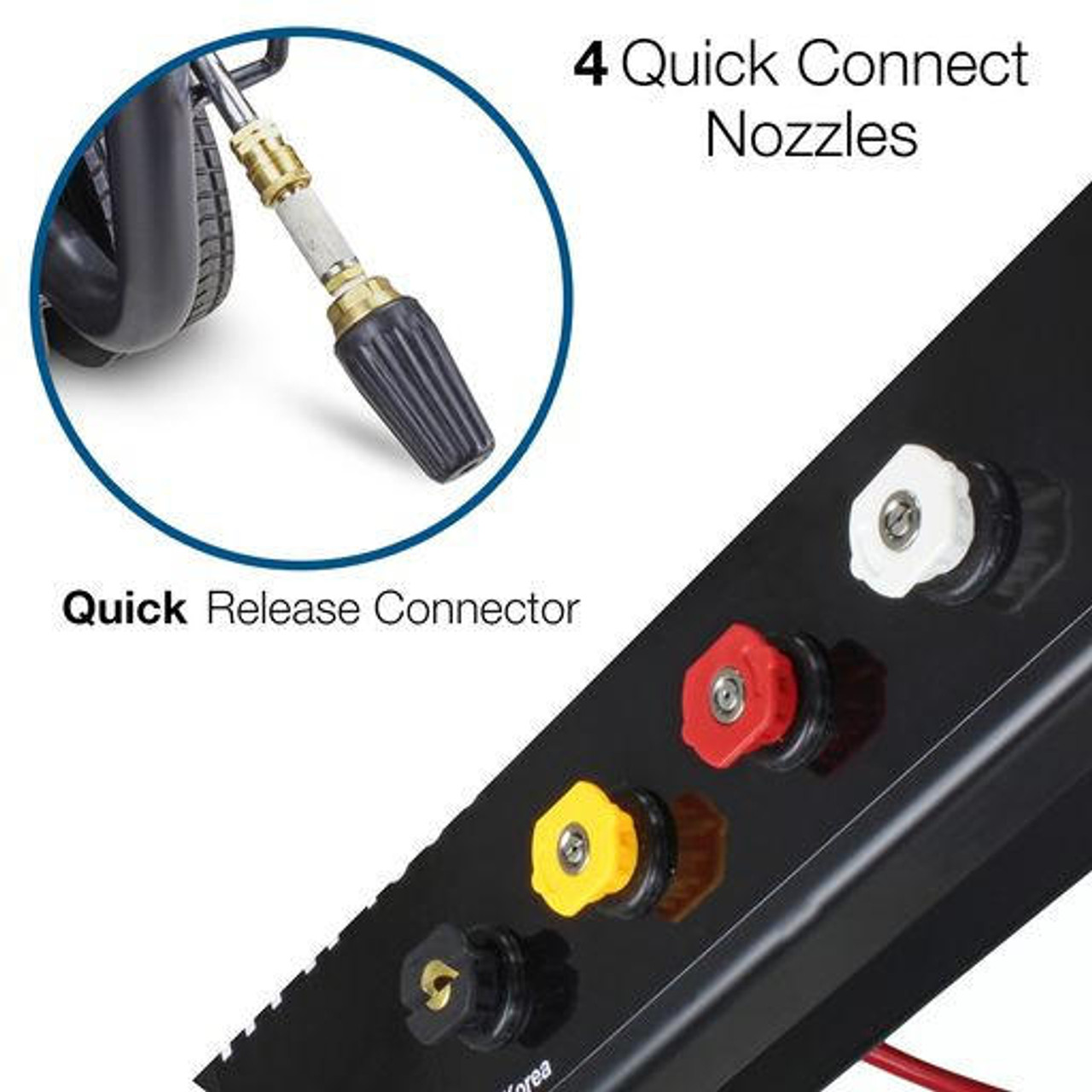 - Range of accessories included: Comes complete with 15m hose, quick connection trigger gun, high-pressure lance, turbo nozzle and a selection of standard nozzles