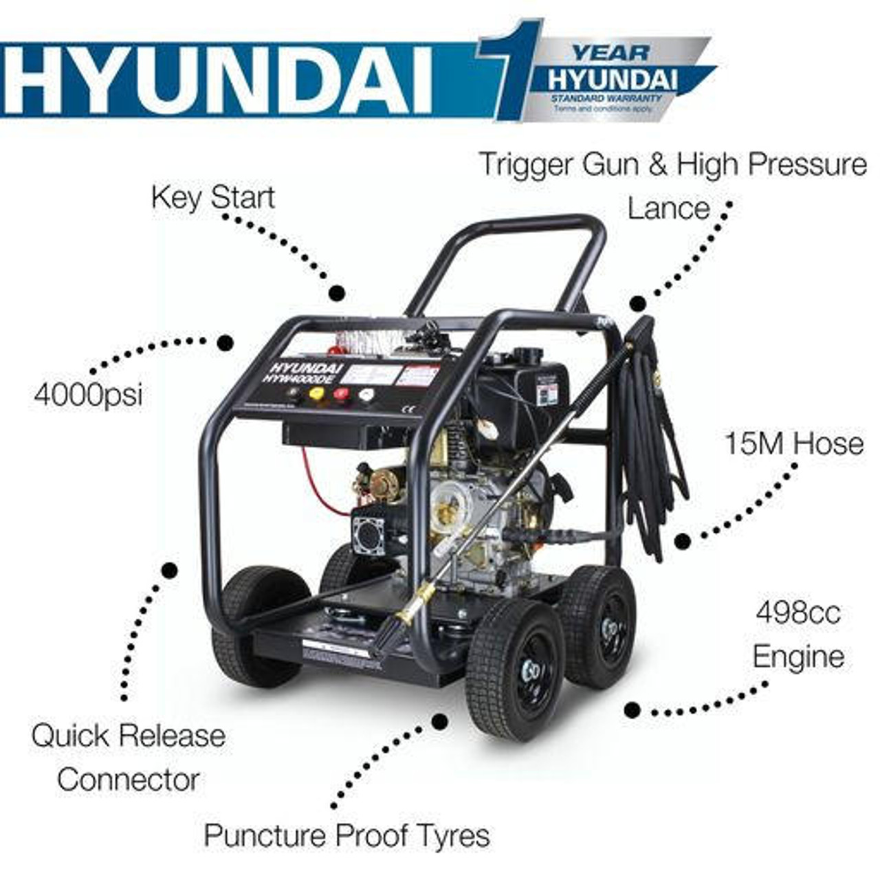 Hyundai HYW4000DE 4000psi 498cc 15L/min Diesel Pressure Washer