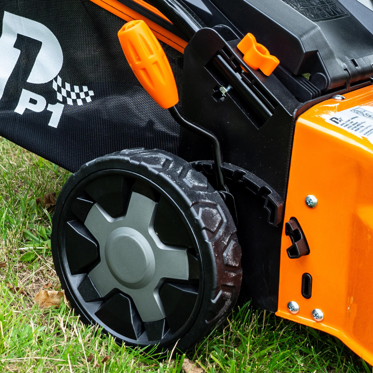 The large quick release 40 litre polyester grass catcher compacts the grass cuttings allowing less time emptying and more time mowing, its fabric design optimises air flow which in turn ensures superior collection performance. The P4100P can also be used without the grass collector if you wish to leave the cuttings.