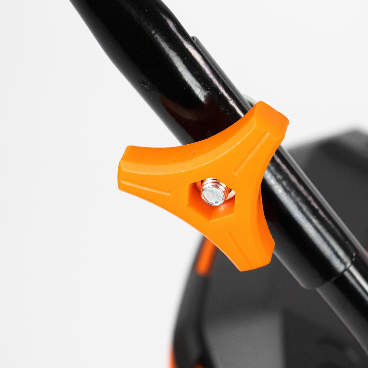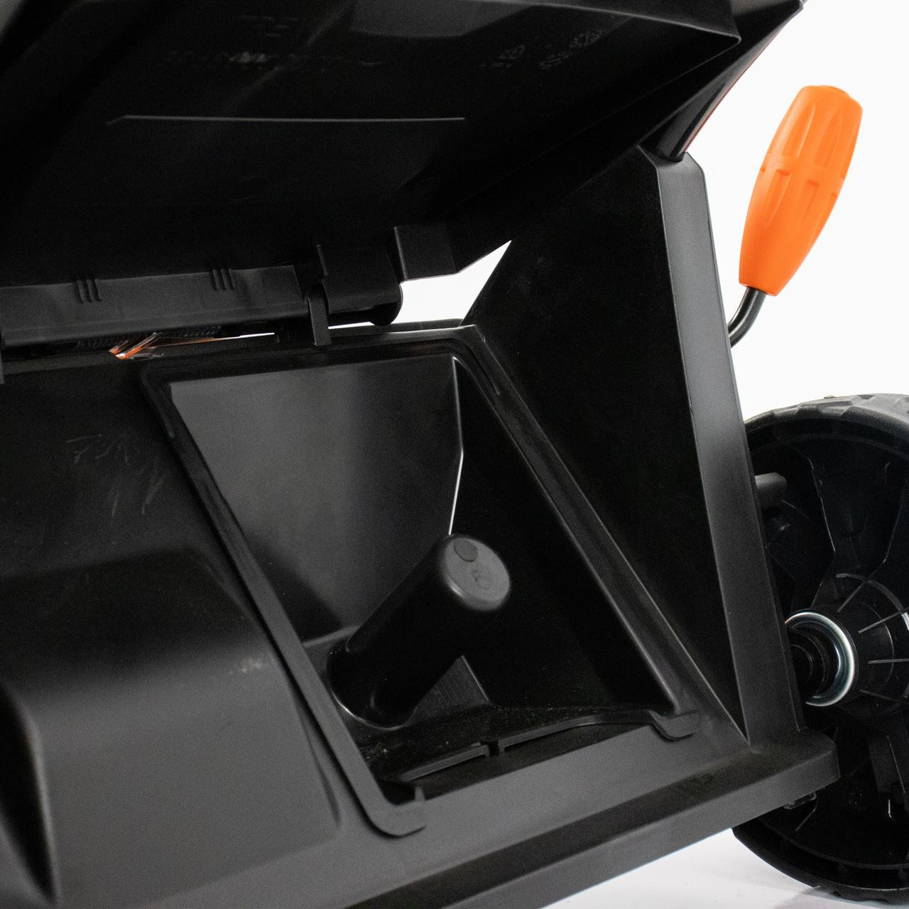 For easy storing the handles can fold down over the lawn mower making storage compact, ideal for the garden shed, garage or transporting within a vehicle.