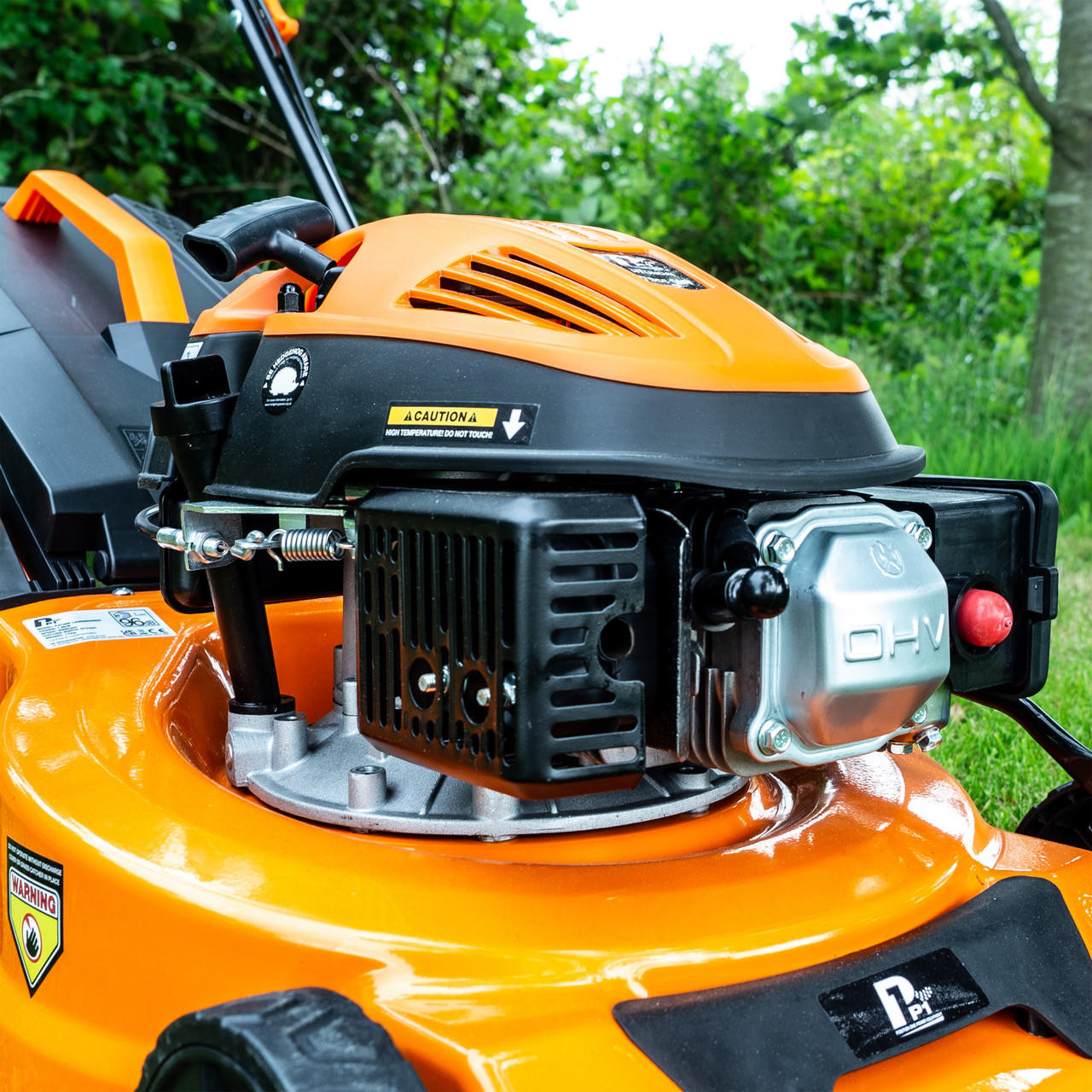 The P4100P is a 79cc 4-stroke hand propelled petrol lawn mower from P1PE (Position One Power Equipment, suited for small to medium lawns the P4100P has a maximum cutting width of 410mm and is the ideal affordable solution for gardeners looking to the upgrade to petrol powered lawn mowers.