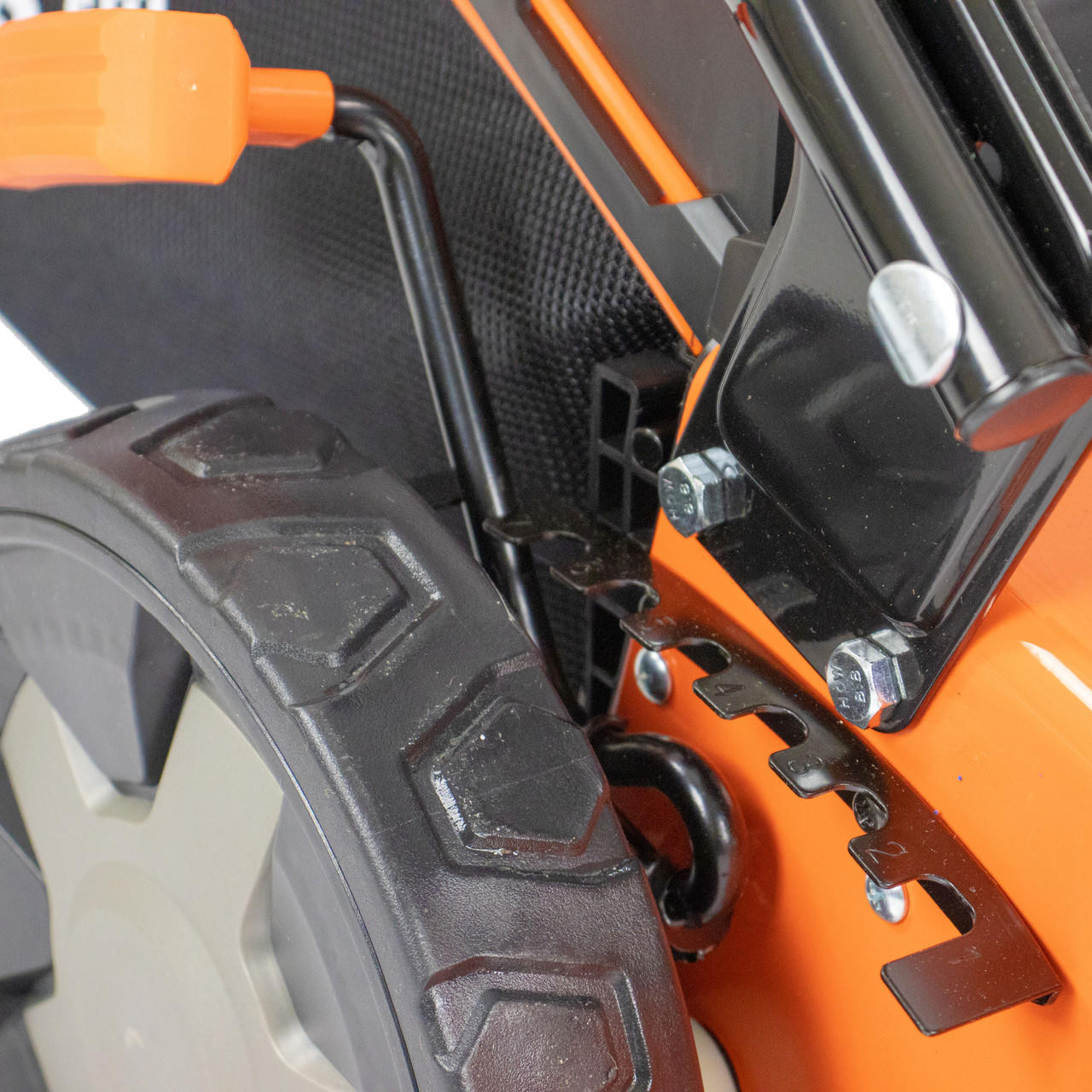 Simply pull back the handlebar lever to allow the lawn mower to comfortably pull upwards making a easy cutting experience that reduces back and arm stress.
