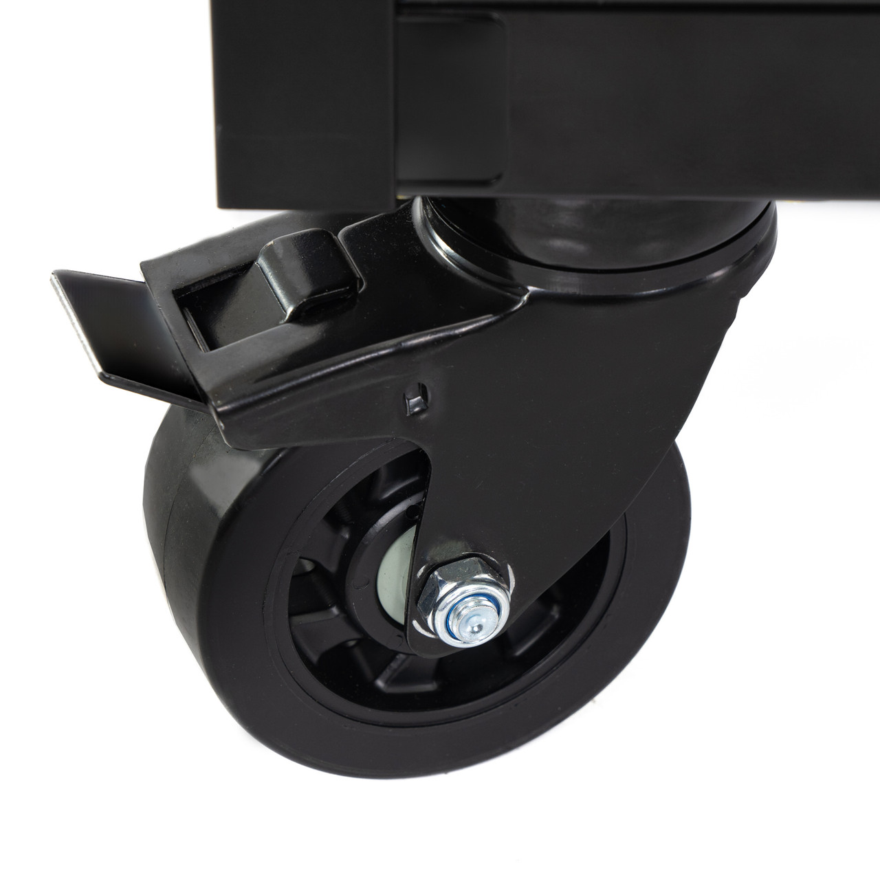 - High weight capacity: Cabinet is mounted upon a mixture of fixed/swivel 5” x 2” casters, while the drawers open across heavy-duty ball-bearing slides.