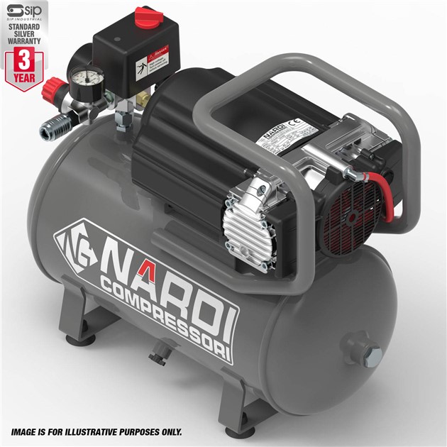 The NARDI ESPRIT 0.75HP 60/4 15ltr Direct Drive Compressor is designed with forced air cooling and a high-quality oil-free pump manufactured with robust technopolymer piston rings that offers long life and low maintenance performance.