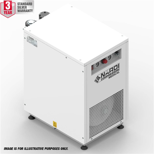 The NARDI EXTREME SD 2.00HP 30ltr Super Silenced Direct Drive Dental Compressor is designed with a high-quality oil-free pump for long life and low maintenance performance, plus a small physical footprint and silenced cabinet ideal for tight spaces.