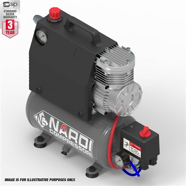 The NARDI SILVERSTONE 2 230v 5ltr Direct Direct Compressor is designed with forced air cooling and a high-quality oil-free pump manufactured with robust technopolymer piston rings that offers longer life and low maintenance performance.