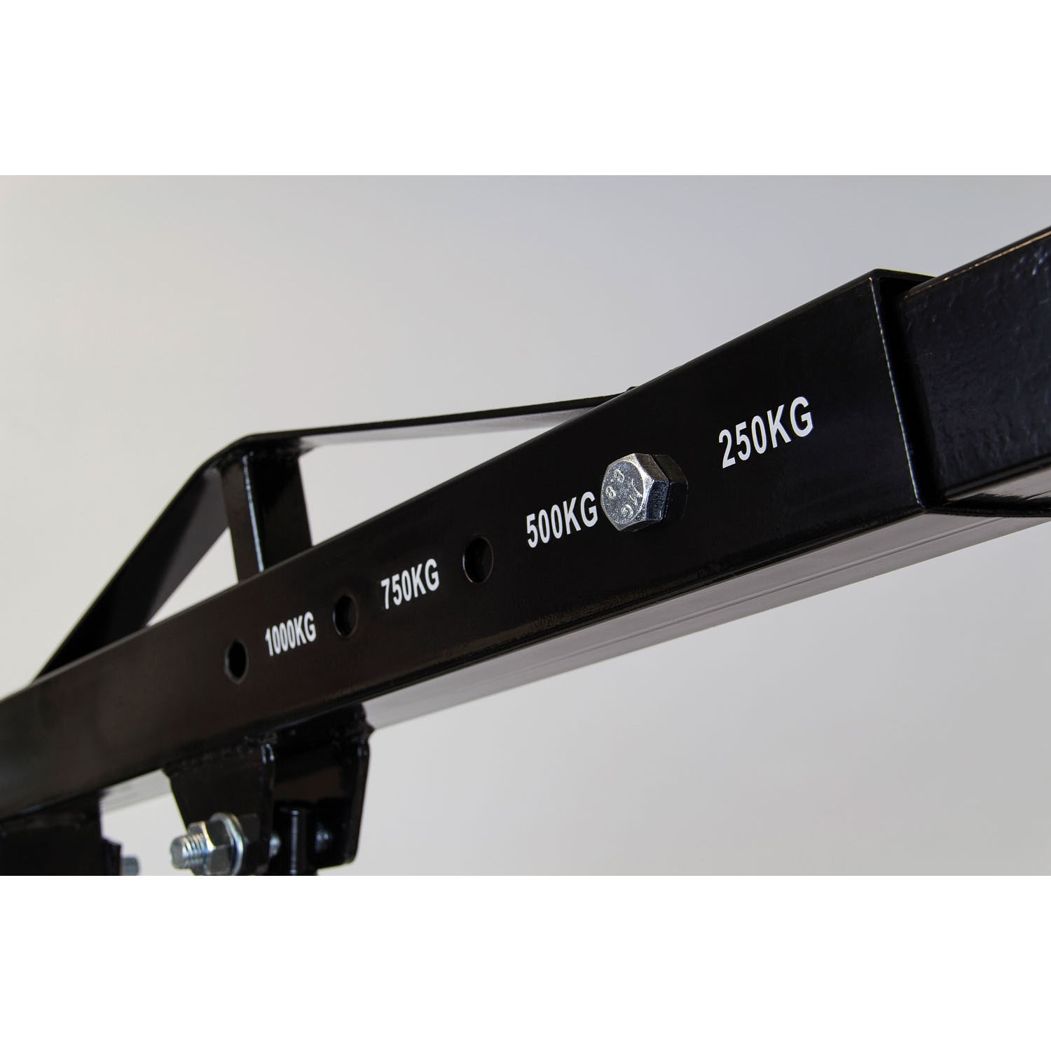 A maximum weight capacity of 1000kg and a 4-hole precision boom with 4 weight stages means this crane is perfect for professional garages and workshops.