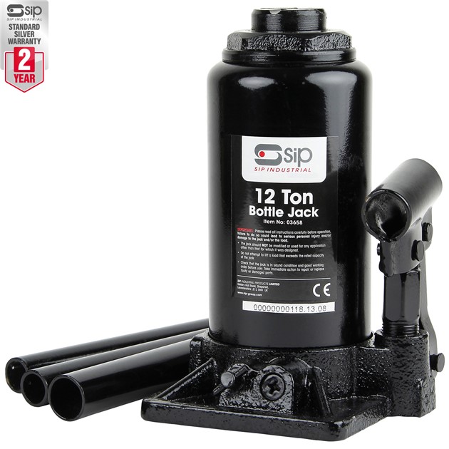 The SIP 12 TON Bottle Jack offers optimal stability and support to a wide range of vehicle and machinery types, including cars and vans, thanks to a serrated saddle for secure load contact, heavy-duty cast iron wide base, and overload protection for added user safety.