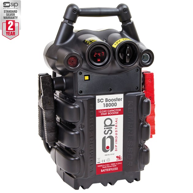 The SIP 12v/24v SC Pro Booster 18000 utilises powerful 3400F ultracapacitors to provide high performance via a maintenance-free batteryless design, meaning an unlimited shelf life and lifespan of over 1million cycles, plus a 15sec fast recharge from a running vehicle.