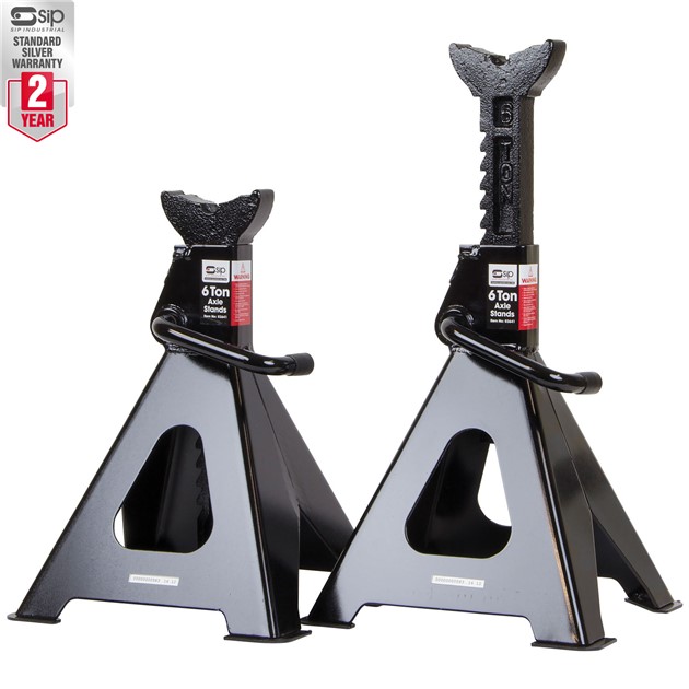 The SIP 6 TON Jack Stands offer powerful and dependable jacking solution, providing secure load contact and stable support up to 605mm. This reliability and stability is enhanced by a wide base with distinct feet to spread weight evenly and efficiently.