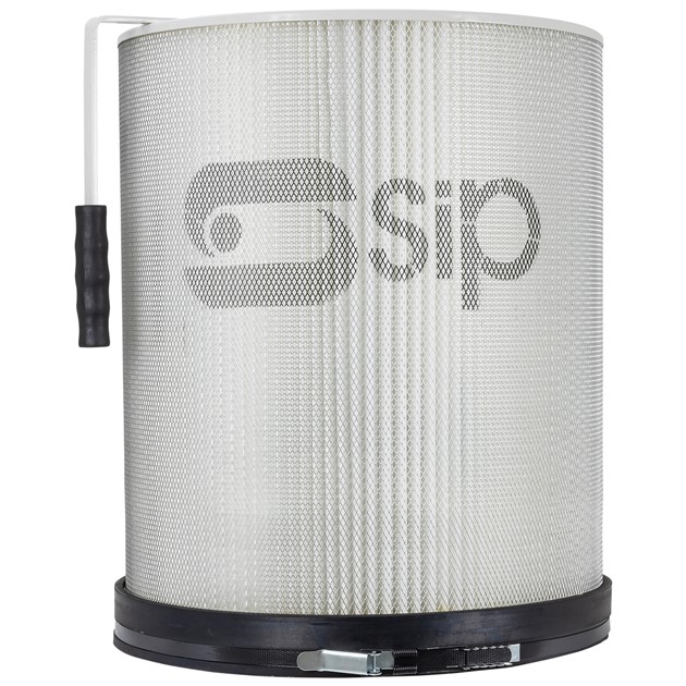 The SIP 62605 1µm Filtration Cartridge offers high filtration of finer grade particles, including materials such as MDF, via a manual filter shaker and cleaner, perfect for use with several powerful SIP Dust Collectors.