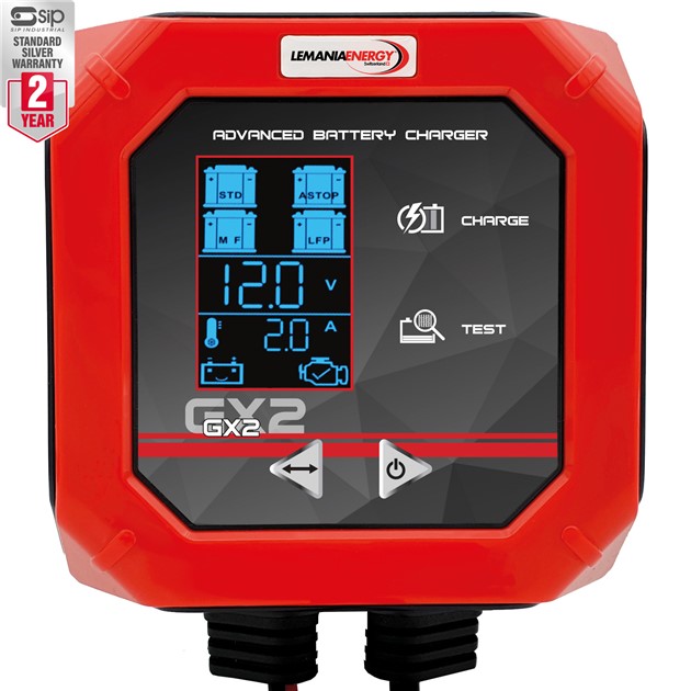 The SIP Advanced Battery Charger GX2 is the ultimate tool for charging, support, and diagnostics, combining intelligent charging, maintenance, supply, and more into a simple process with Lead Acid, SLA, AGM, GEL, WET, VRLA, CaCa, EFB, and LiFePO4 batteries.