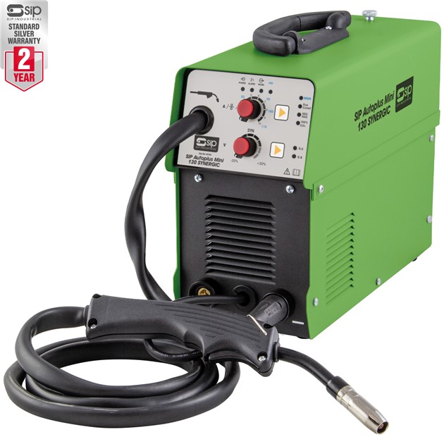 The SIP AUTOPLUS Mini 130 SYNERGIC Inverter Welder utilises powerful inverter and synergic controls to make good quality welding and high performance easier, allowing voltage and wire feed speed to be adjusted automatically through one control knob.
