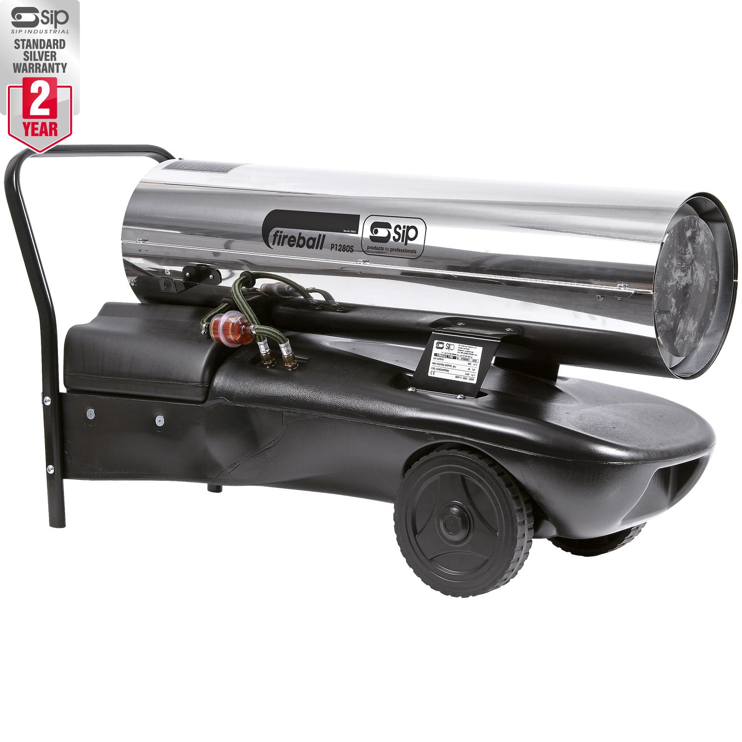 The SIP FIREBALL P1280S Professional Space Heater is a mobile diesel or paraffin-powered unit built to last, with a low maintenance air pump with proven technology and heavy-duty corrosion-resistant stainless steel casing for added durability and longer life.