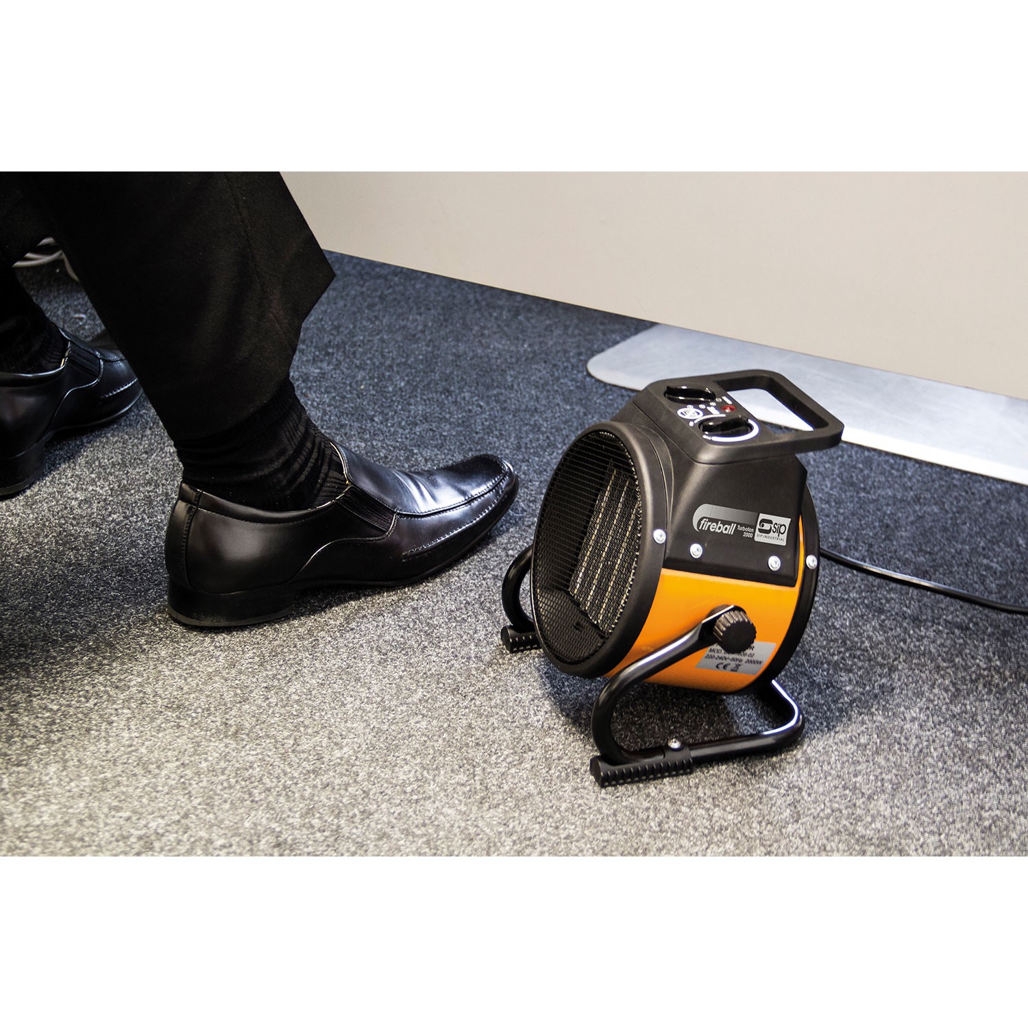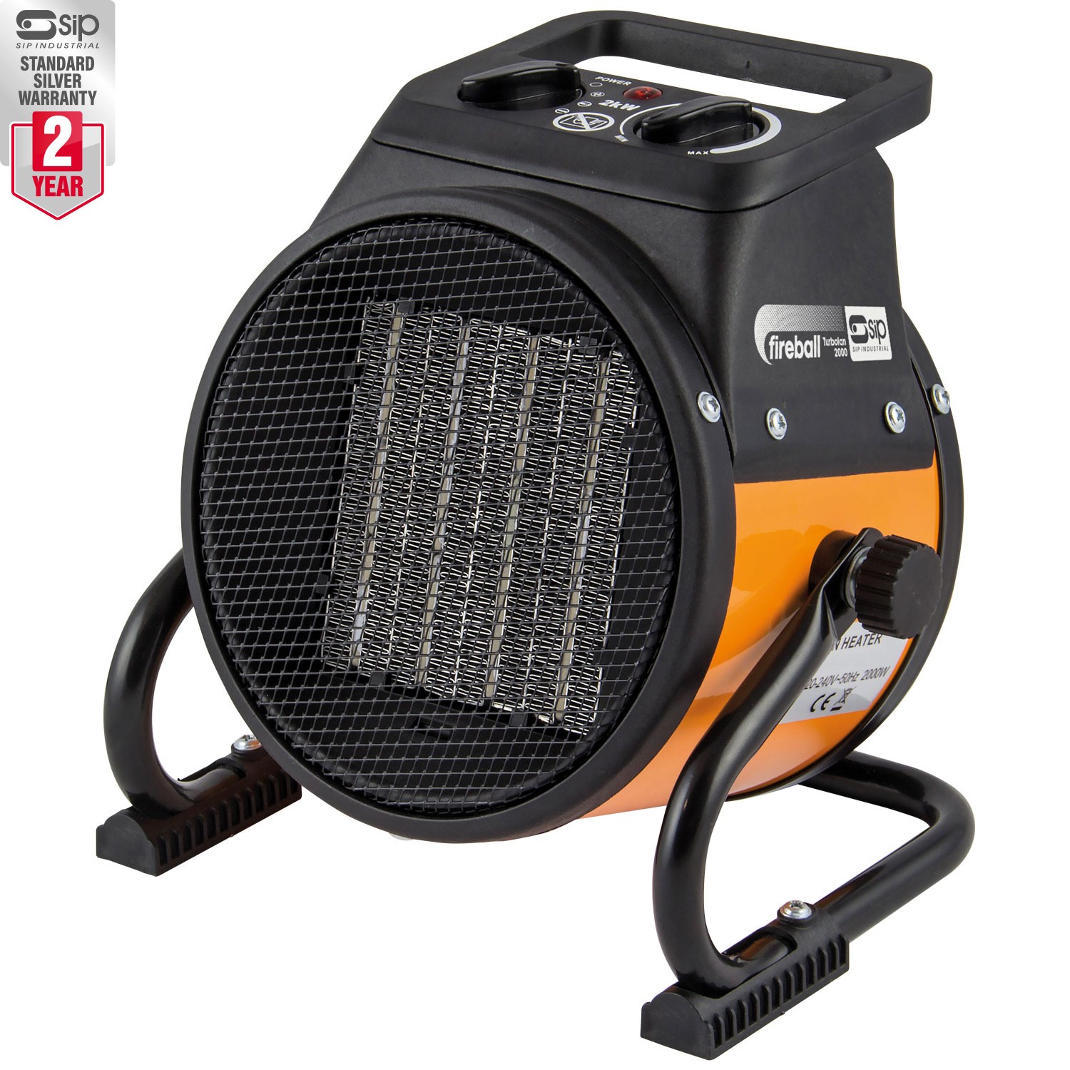 The SIP FIREBALL Turbofan 2000 Electric Fan Heater is a lightweight and compact electric heater with versatile settings perfect for a range of environments, including smaller domestic applications at home, plus garages, workshops, offices and shops.