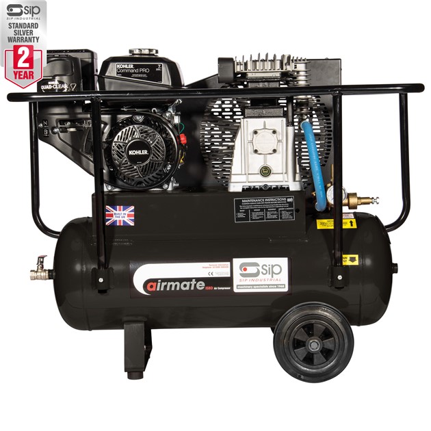 The SIP ISKP7/50 50ltr Industrial Petrol Compressor is a petrol-powered industrial compressor built with a heavy-duty KOHLER® EURO V 207cc engine and wheel-mounted design for the perfect balance of powerful performance and versatile mobility in professional and industrial environments.