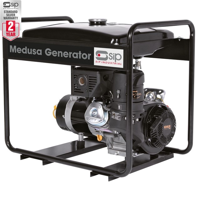 The SIP MEDUSA MGKP7.0FF KOHLER® Generator utilises a heavy-duty 429cc EURO V engine that offers 7kVA continuously rated output, plus other features including a Quad Clean™ cyclonic air cleaner which forces large particles of contaminants from the engine.