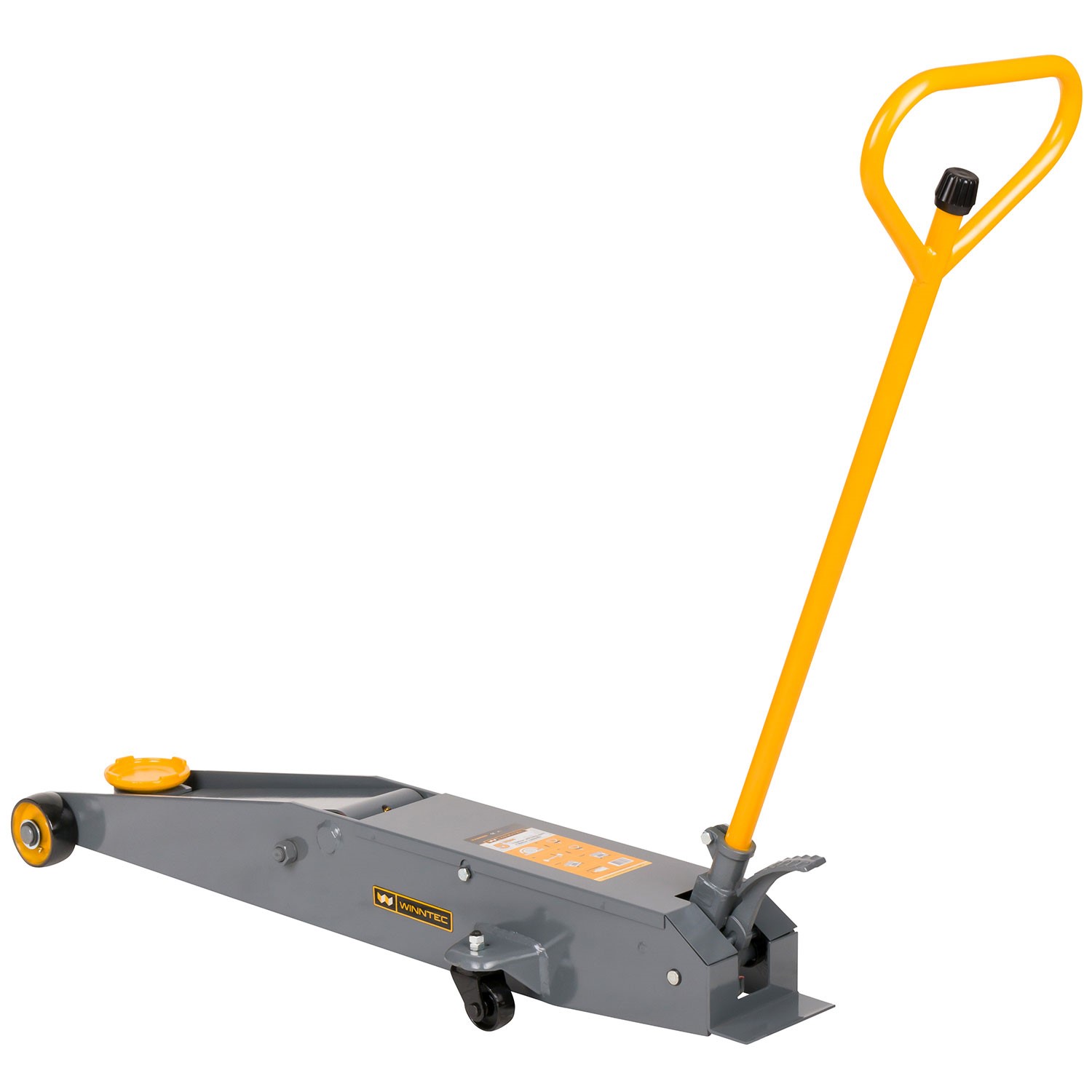 The WINNTEC® from SIP 5 TON Long Chassis Jack is perfect for extreme lifting of trucks and heavy machinery, offering high-reach performance from a low-profile design and exceptionally safety usage via automatic overload and universal joint release valves.